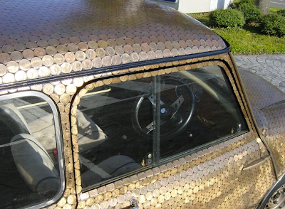 Nice classic Mini with a very special treatment. I’d guess the performance from the 998cc engine would be taxed from hauling around all that copper.