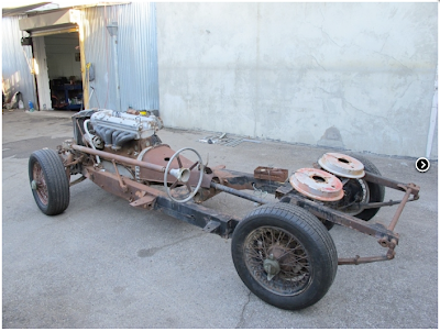 No mention if the engine turns over or even runs, so lets just say for our purposes it runs swimmingly. Then visualize a one off roadster built on this chassis. I’m thinking more Allard than Excalibur. If it was done right maybe you’d get entrance into some of the old time races like the Mille Milia. Just hope you take a stiff one to the front end or that steering wheel is going to be a permanent resident where there was once comfort and solice.