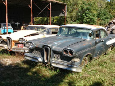 “Barn fresh pair of Edsels. Interiors are bad, each car is hit in the l.h. door.