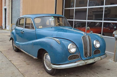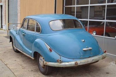 “This 1957 BMW 501 Sedan Coupe . It is equipped with a 4 Speed Manual transmission. The vehicle is Blue with a Blue interior. – 1957 BMW 501 Blue with Red interior. 4 Door sedan. Extremely rare. Excellent original car to restore.”