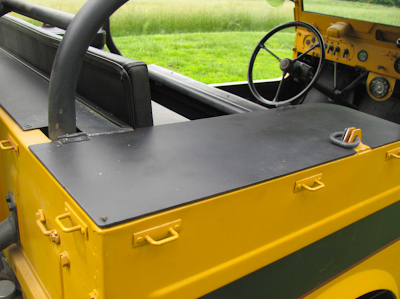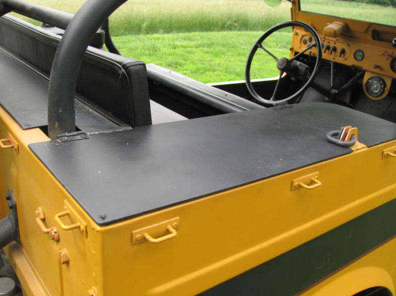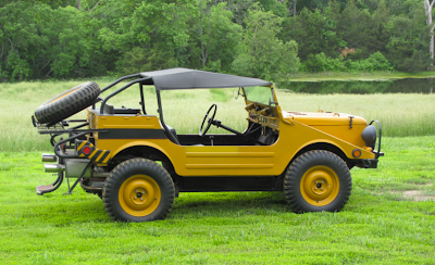 ORIGINAL POST August, 12 2013 – “This historic military mark has been used by NATO in various contested theaters. This particular vehicle as been creatively and professionally sliced and diced to keep all its interesting charactoristics while increasing its power and reliability. The heavy frame and three cylinder two stroke drivetrain has been replaced by a custom tube frame and continues the use of its German heritage with all Volkswagen parts; motor, transaxle, front and rear suspension, and gas tank. The motor is a late strong running 1600 dual port with a single weber carburetor. The stock four speed transaxle shift smoothly. The tires are nearly new, and the top is in excellent condition and all gauges work. I have added steering bump stops, both outside mirrors, covers to the rear cargo bins, new wood slat flooring, added a tach, replaced the speedometer, and had dog tags made for the key fob. It’s wonderful and done. Here’s a tip for shipping. The top material is very heavy and could be shipped by the less expensive “Open container” method. Please bid with confidence. When you receive it, it will start right up, run stong, brake perfectly straight and provide you with no negative surprises.”