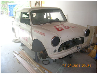 “This Mini has extensive SCCA history. Raced throughout Southern California in the 70’s it was commonly referred to as the “Bumble Bee” mini as it was painted a combination of white in front with a “bee” body on the back half of yellow with black stripes. After being raced in that configuration for 5 years the car was rebuilt with the wide body flares of the time and painted entirely white which is how it sits now. The car has been instorage for over 20 years but is in very good condition. There is one dent in the lower right rear quarter where the car fell as it came out of storage. Having owned and built my mini of the same vintage from the ground up, the damage is not anything that can’t be easily fixed. Everything else on the car is in very good condition.