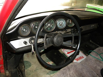 Here’s a pretty decent 912 that needs help. Five gauge cluster, good dash, looks to be a matching numbers engine or in the ballpark of it. Of course some rust to deal with in the floors but the body looks ok. Missing engine shroud and tin plus carburetors. If you need that stuff give me a ring, I have it. I happen to like the 14″ Fuchs but for some reason they always get shunned for the 15″. Come on it’s one inch, can you really tell? That’s what she… Four speed tranny instead of the five.