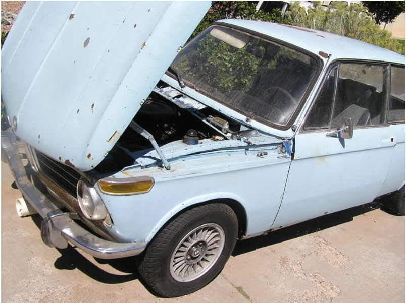 “What a Find. TWO 1968 BMW 1600s with sequential serial numbers. Blue one drives around the neighborhood. Son loves the old school 4-speed. Newer tires, new brake cylinders and shoes on rear. No leaks in engine or drive train. Body rust per photos. Rust through on left rocker panel. No rust through on hood, roof, trunk, doors, or other. Inside has new blue carpet but interior needs much work to make good and far from restoration. Great original equipment- washerbottle, bumpers, jack, rims, engine, rotor, coils, steering wheel, headlights and the like. Includes some parts such as window rubbers. SOME interior parts missing. ~156000 miles