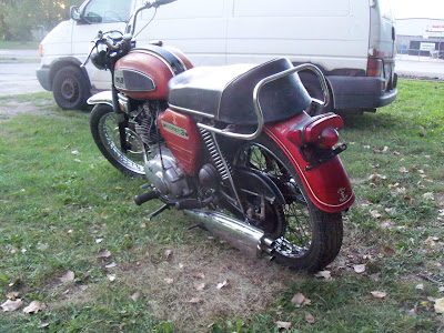 1969 BSA Rocket 3, 750cc triple. Automotive design firm Ogle styled the bikes very poorly, with “Shoebox” tank, slab-like side covers & laughable “Ray Gun” mufflers. It hurt sales badly.
