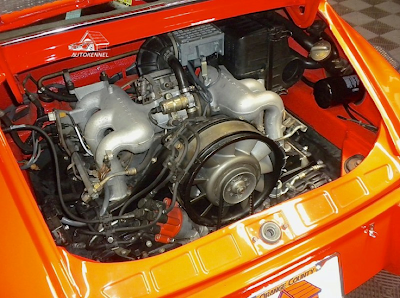 There isn’t much that I don’t like about this 911. It started life as a ’71 T and became a hauler of the mail with 3.2 engine swap and steel RS flares. It’s called an ST Tribute in tangerine. Ok I don’t like the gear shift knob and the two style of rims. But I really love the rear wheel package. Looks classic old school.