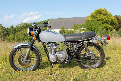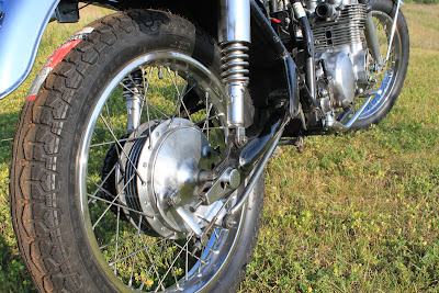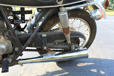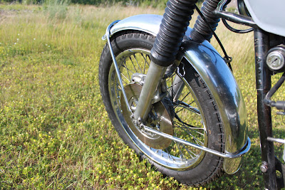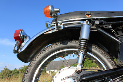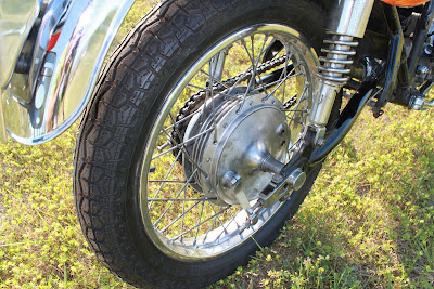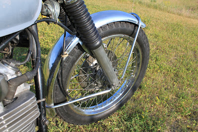 During my work, I tore down most of the bike aside from removing the engine, cleaned and polished everything then reassembled.  If something was broken or in need of replacing, it was taken care of.  Even the underside of the fenders have been wheeled out.  While the chrome is slightly pitted and the original black frame paint shows its age, it presents fairly well as a package.