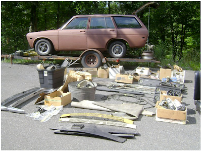 So you could purchase the wheels cause you want it to roll plus car for $2,450 if you are lucky enough to win without another bidder.  Or Buy it Now because you don’t want to lose this opp but take the hot rod engine option and pay $4,250 total.  Then you’ll have to figure out what to do with the L20B that also comes with it plus all that potato salad.  Or you could just put stake sauce on your neck and let Satin chow down.