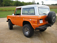 I love the old Broncos, FJ40s and Jeeps.  This one ticks all the right boxes with orange paint, white top and wheels that are slightly oversize but not obnoxious.