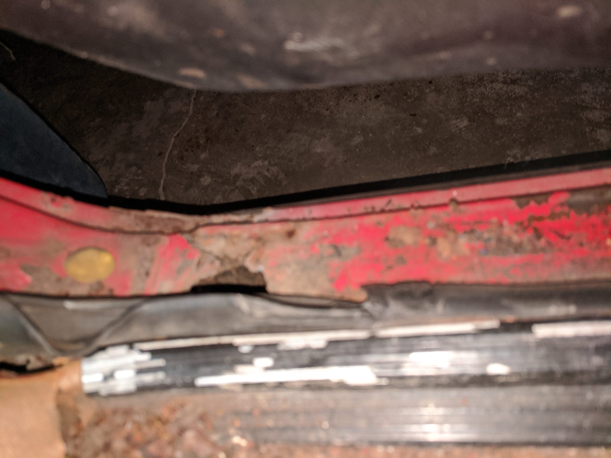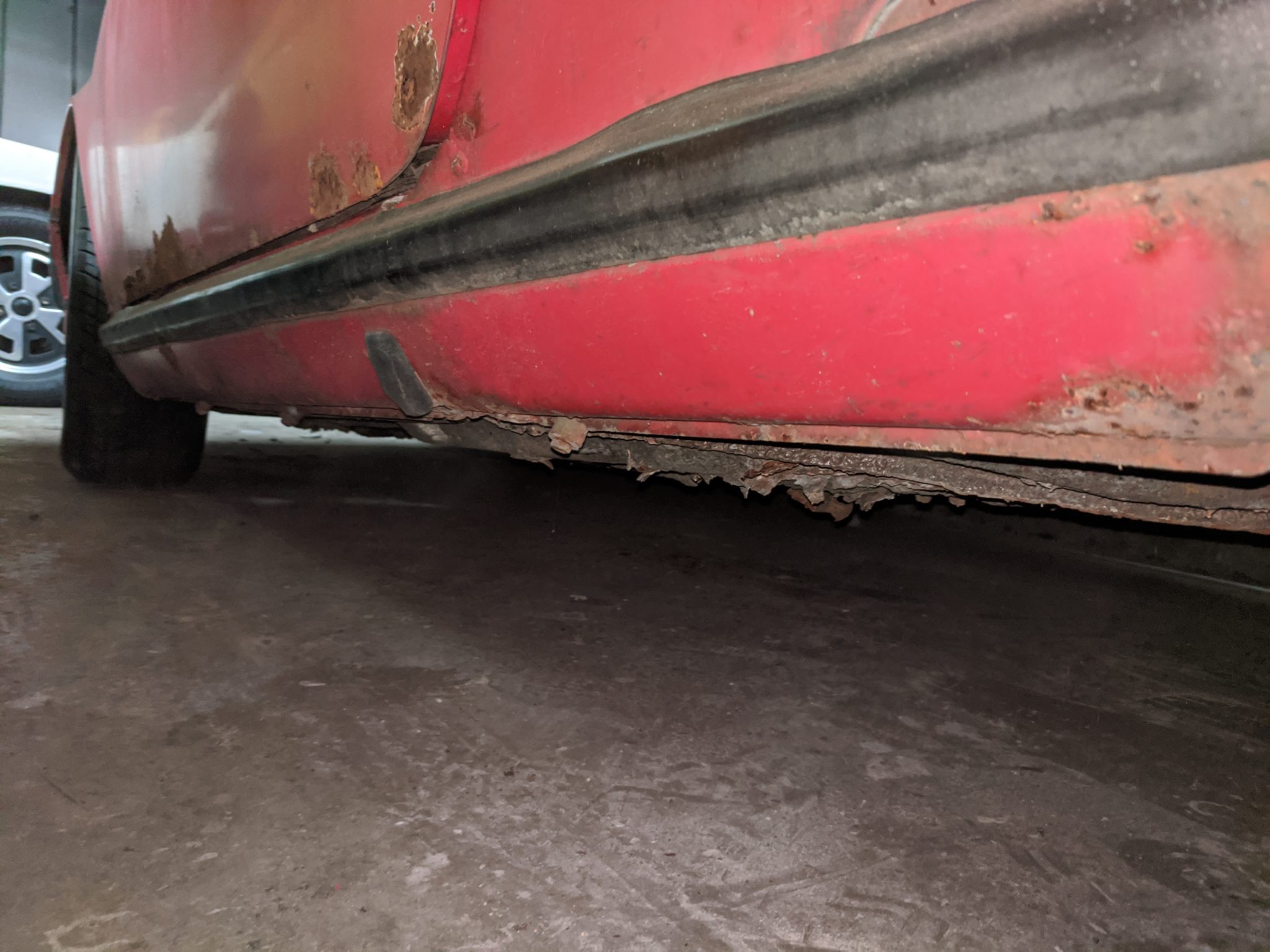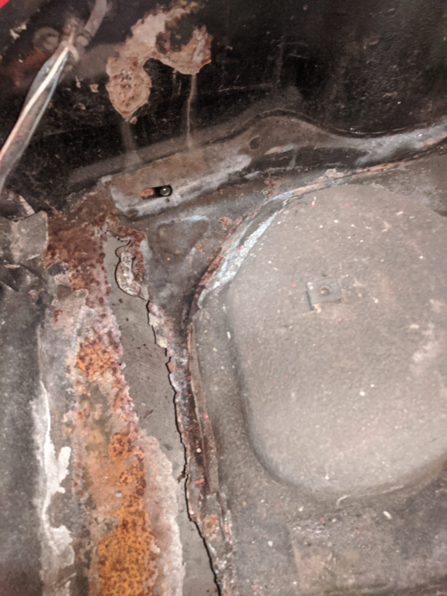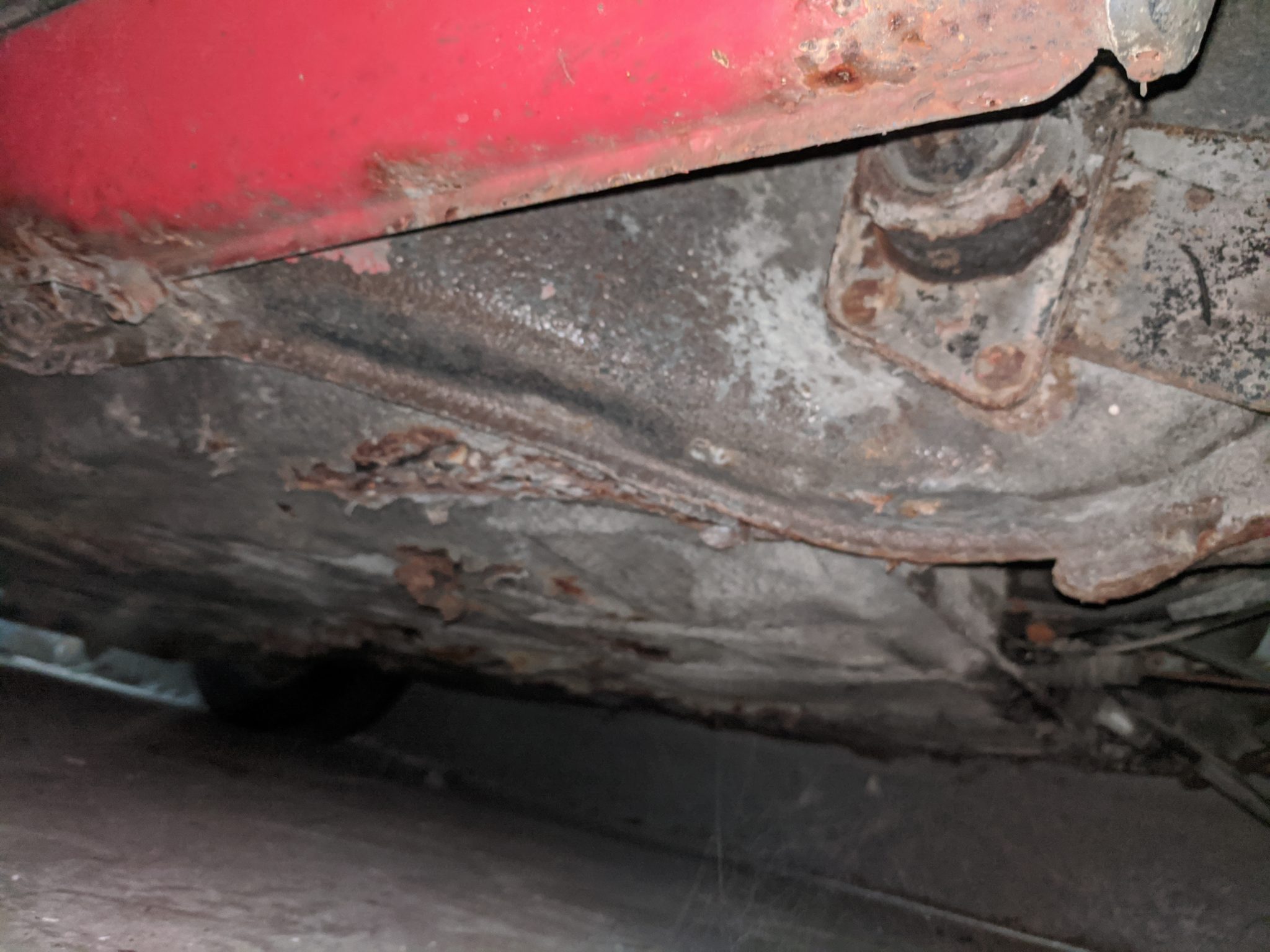 – Rust in sills, front pan has holes, hole underneath pedal cluster, through rust in bottom door edge