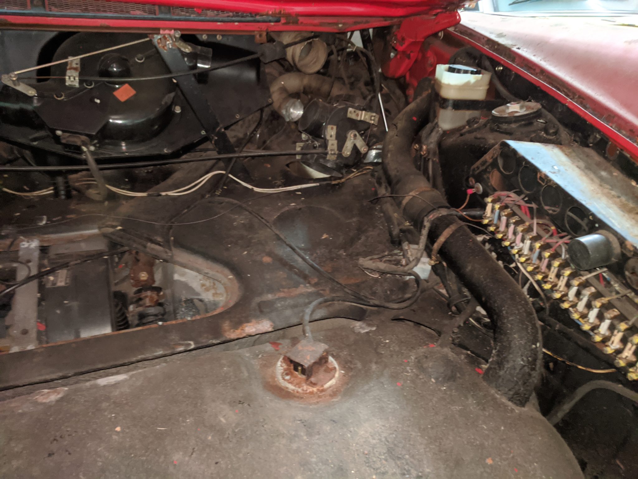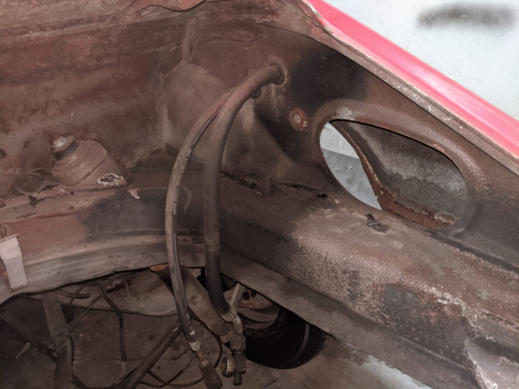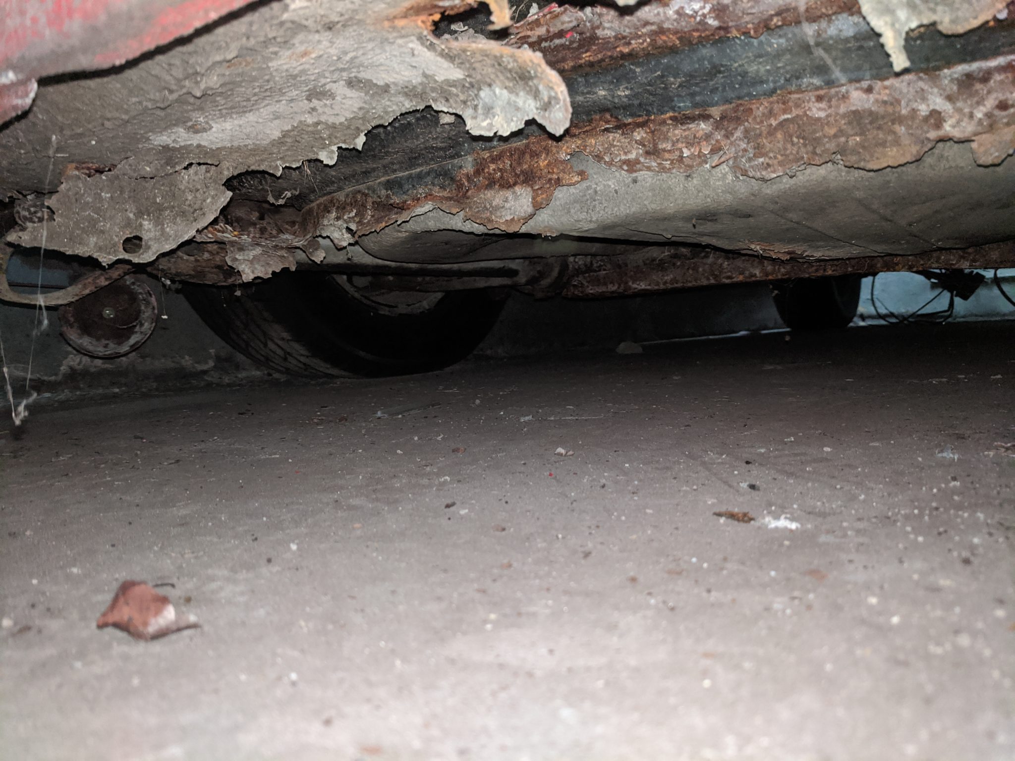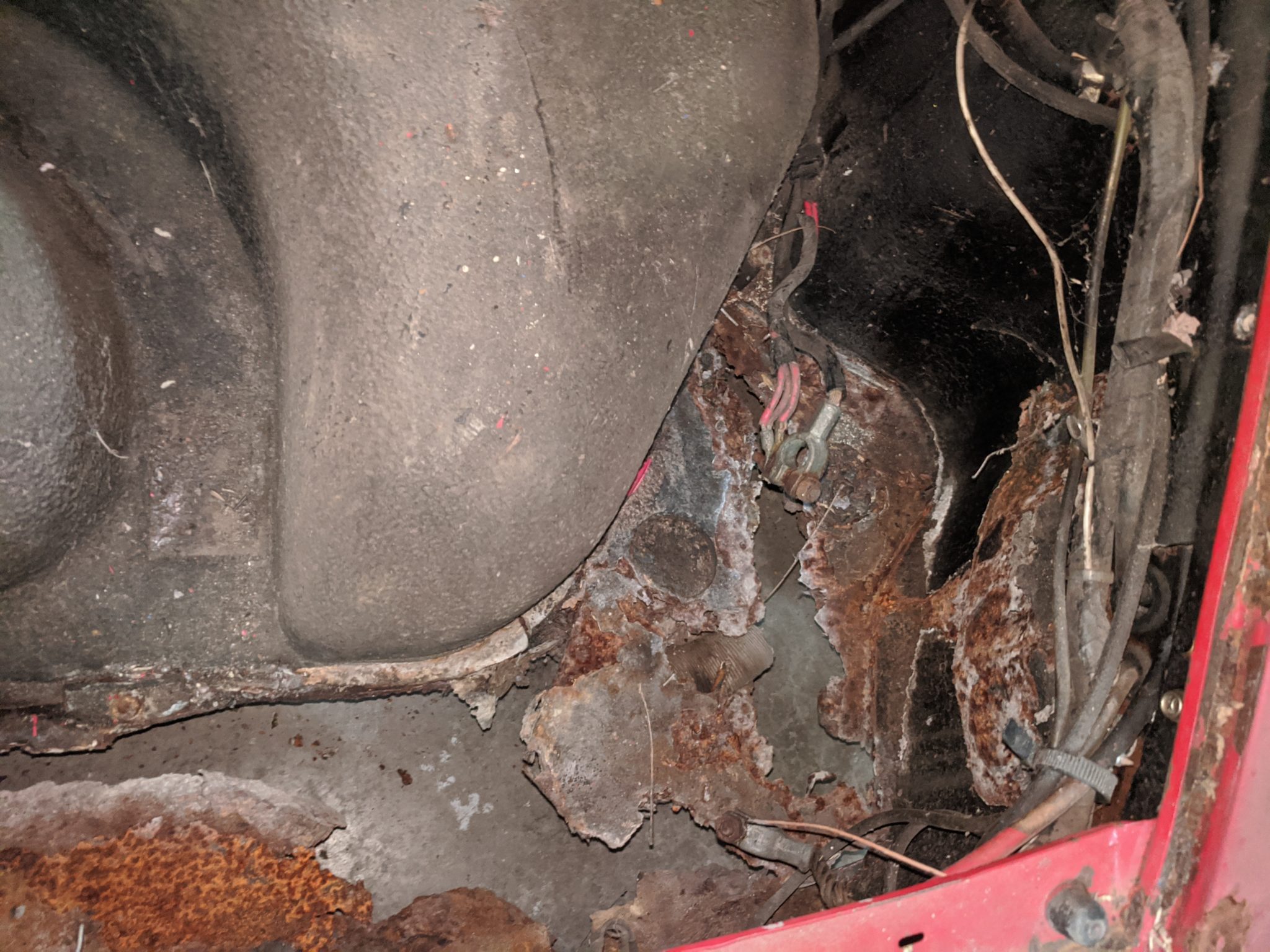 – Rust in sills, front pan has holes, hole underneath pedal cluster, through rust in bottom door edge