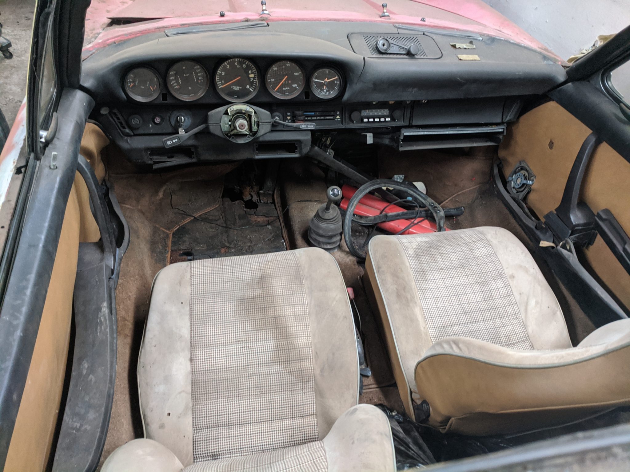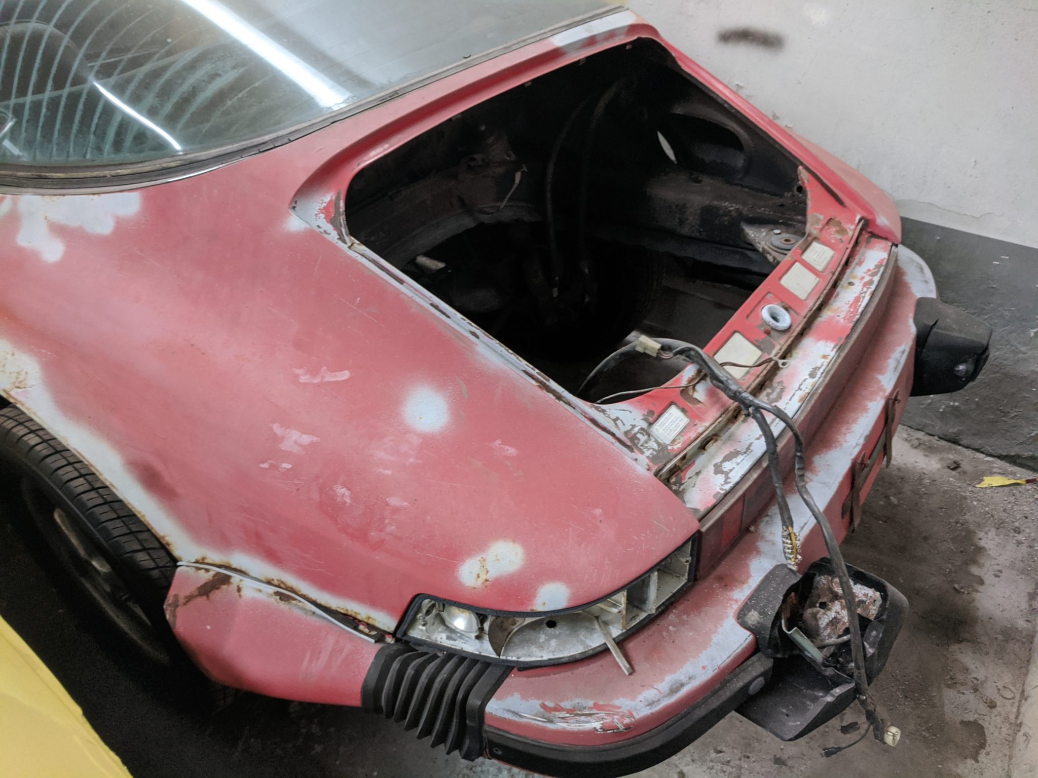 – Windshield, engine lid and targa top are missing