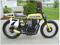 Cool bike on eBay in Onsted, Michigan for $1,500 to start. “OK. Hi There. This is one incredible motorcycle! It is a purpose built Yamaha Flat Track Racing Bike. This bike is in mint condition as you can see!!! It was totally custom built by a former flat track racer and built to race in the Vintage Dirt Track racing venue. It has been run only once and is so fast that it smokes the 650’s out there! This is one bad-boy Dirt Track bike and not for beginners. It started life as a 1976 Yamaha XS 360. The frame was comppletely re-done. A front end from a Yamaha TT250 was put on. The rear end was modified and a custom swing arm was added. The engine had only 200 miles on it. It was totally gone through and freshened. The bike has 65,000 Volt automobile coils on it and brand new 40mm Mikuni Carbs. The bike has a custom air filter design as you can see. This engine breathes!!! Brand new tires both front and rear. Also included is the SHOP MANUAL for this bike, as well as the private book from the builder. The bike has a custom-built exhaust system designed to provide maximum horsepower.”