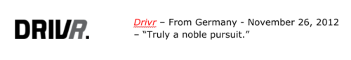 • Drivr – November 26, 2012 – “Truly a noble pursuit.” — Germany