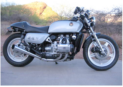 Original Post: I never would have thought to turn a Goldwing into a cafe style bike but it takes all kinds, don’t it? Funny that I was attracted to this one independently of this bike that featured I earlier (another picture below). Both were done by the same guy. But most interesting is that the owner gives tons of details (his full write up below) including the fact that the motor was developed in conjunction with Porsche and is basically a Porsche flat four. Crap, now I want one of these too.