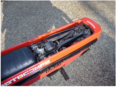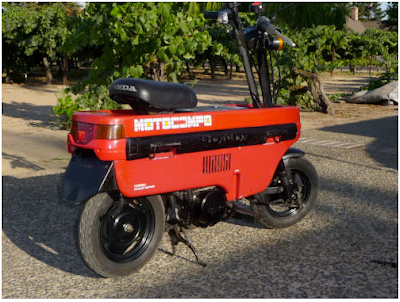 “This is a rare 1981 Honda Motocompo NCZ-50 in red,this bike is in excellent running condition and has no issues,starts on first kick every time. This bike is a 49cc 2-stroke with 2.5 HP these bikes were made from 1980-1983 and a few found their way to the United States. These fine bikes were made to fold up into a square peice,with handel bars folding down and seat retatcting and the lid covering the bars and speedo and fit into the trunk of the Honda city model car. This bike has just had new original style Dunlop ties and new tubes installed and is ready to ride and enjoy,please see pictures of actual Motocompo.”