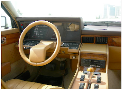I still can’t get over the look. Love it. Very cool in all of its Reagan year’s splendor… except for the steering wheel. Not sure if that will ever look good. But it would sure make for interesting drinking and driving. You could probably sip from a straw and never move your head.