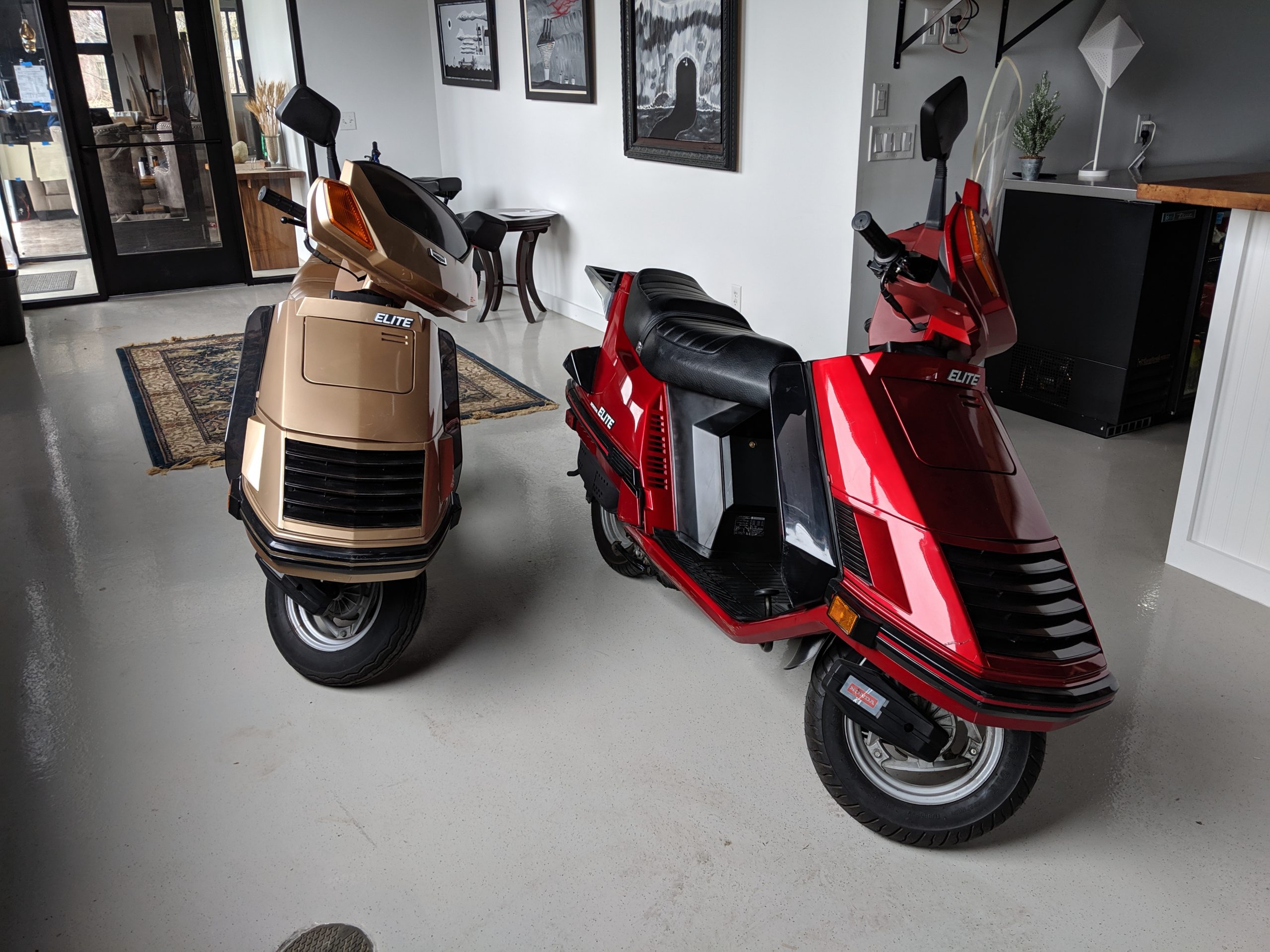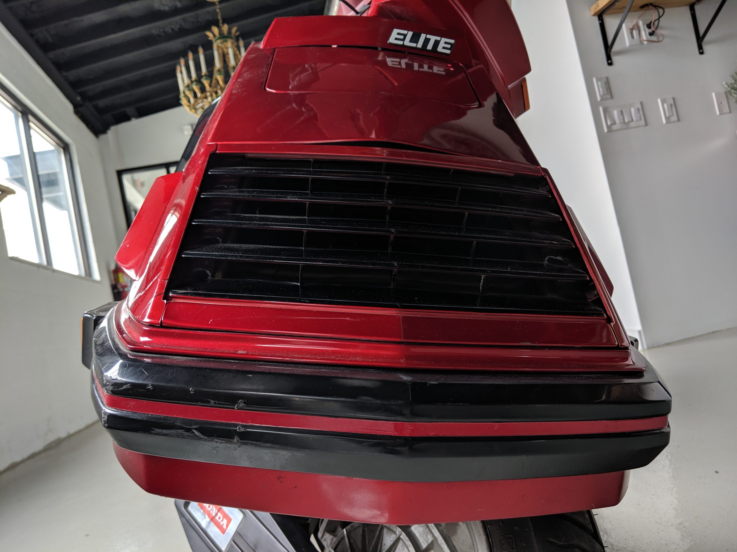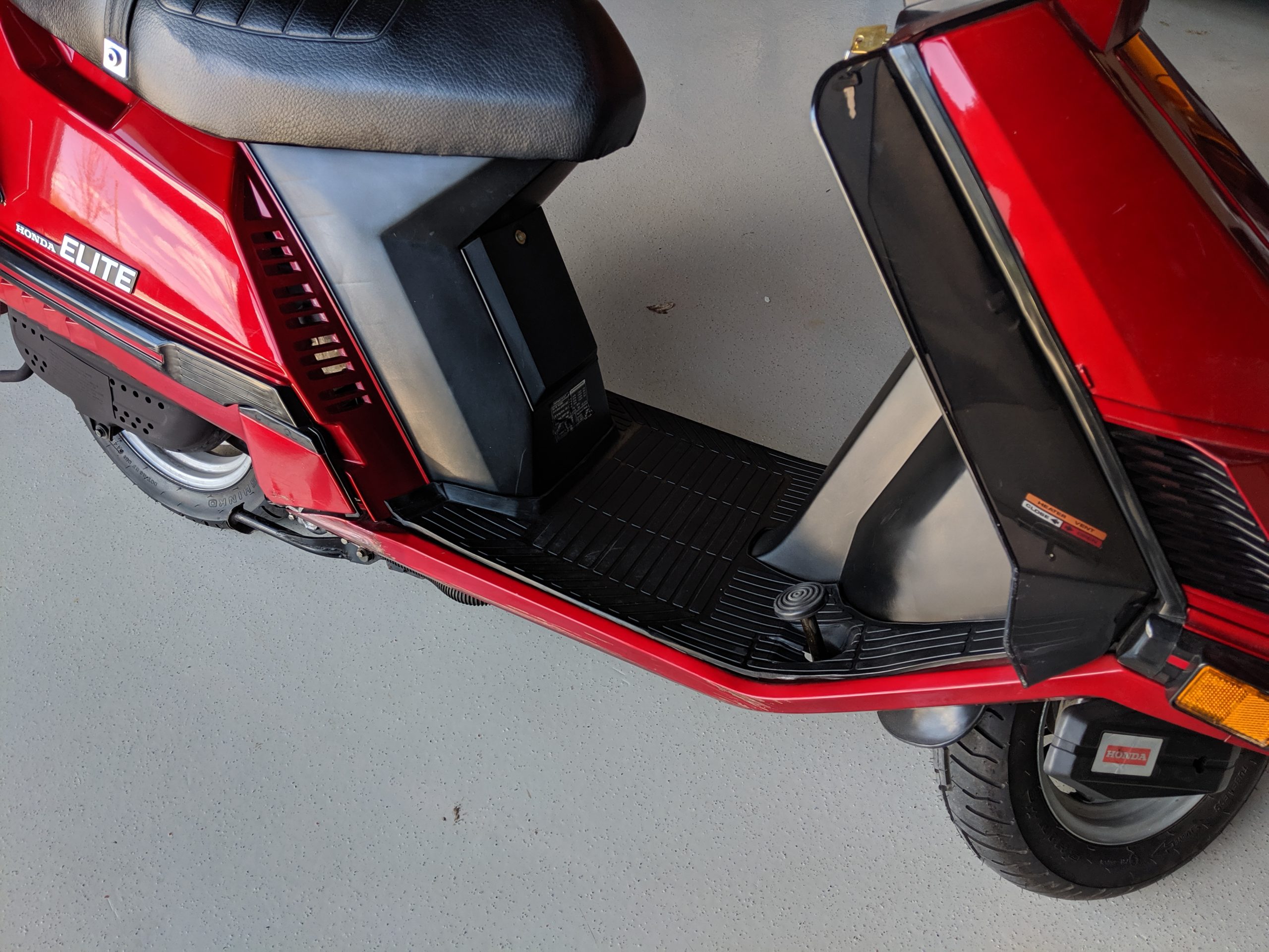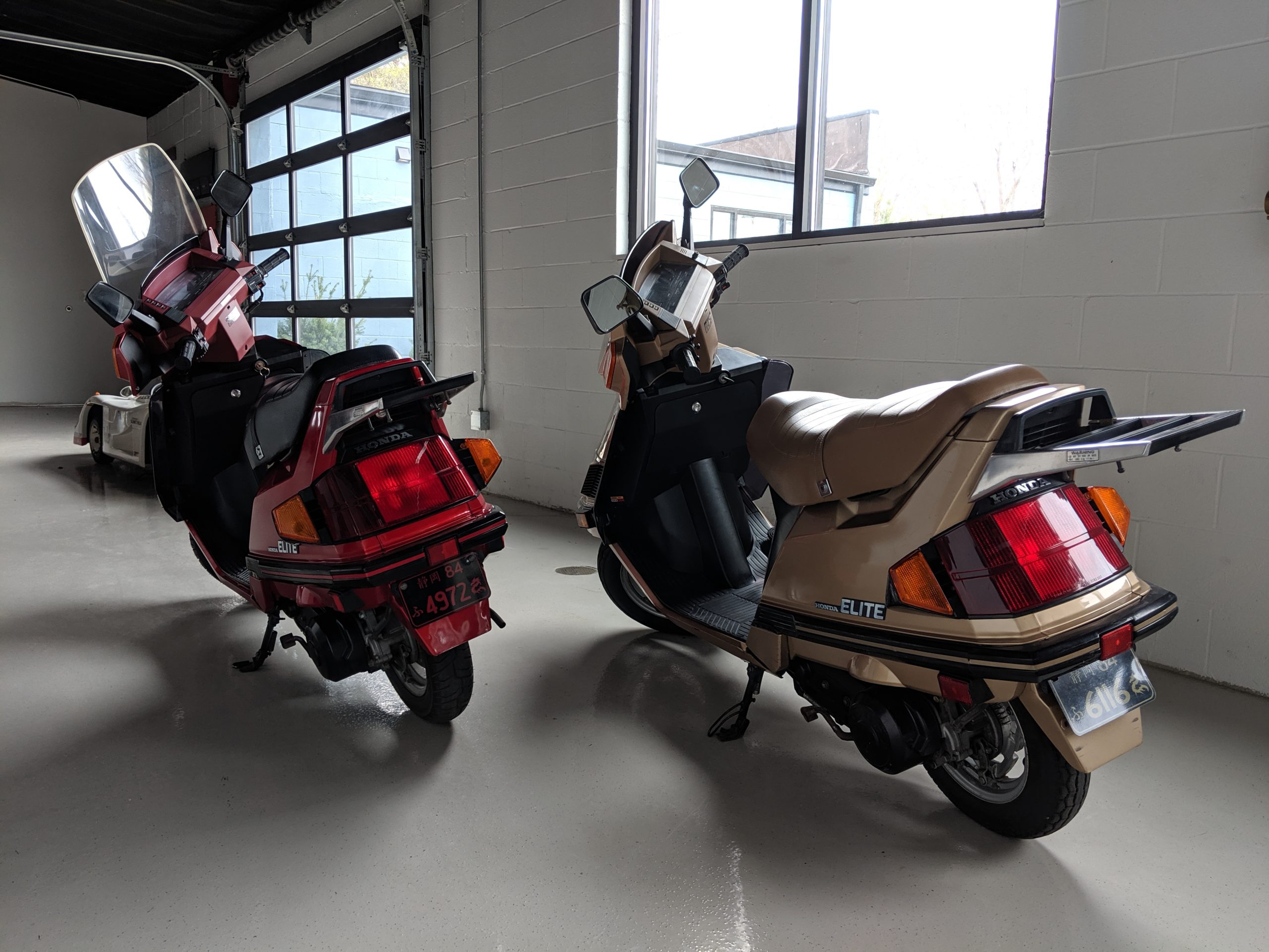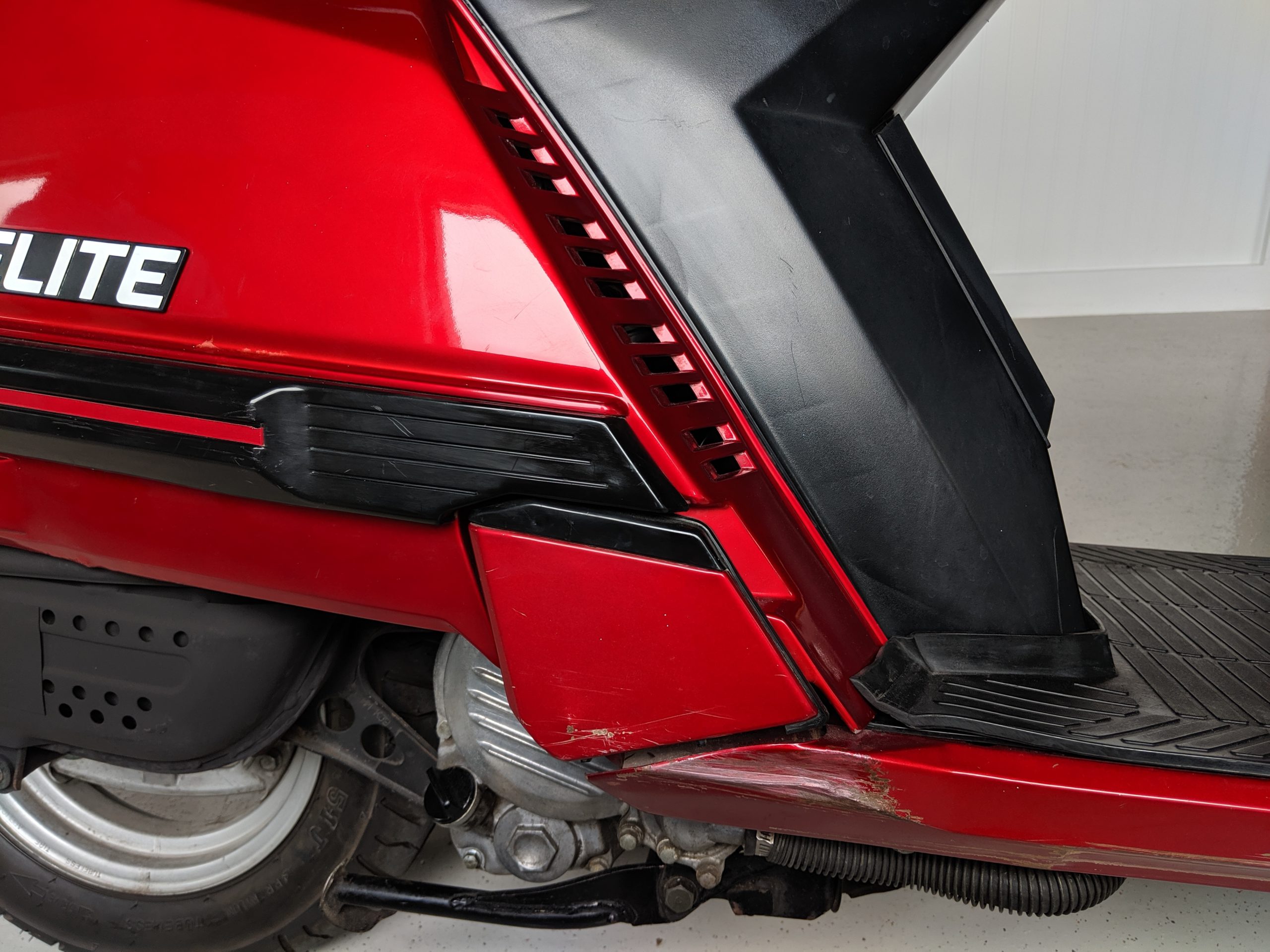 This first and only year 1984 Honda Elite 125 was purchased last year. The Honda Elites are the only scooter ever made with a pop up headlight. The 125 was only made in ’84. Honda continued the popup headlight in the 150 Deluxe for ’85 and ’86. The added power was a welcome addition before Honda discontinued their mid range scooter in favor on the 250cc and 80cc.