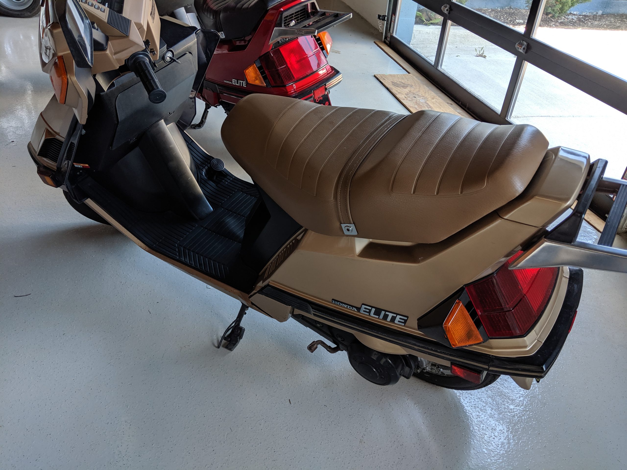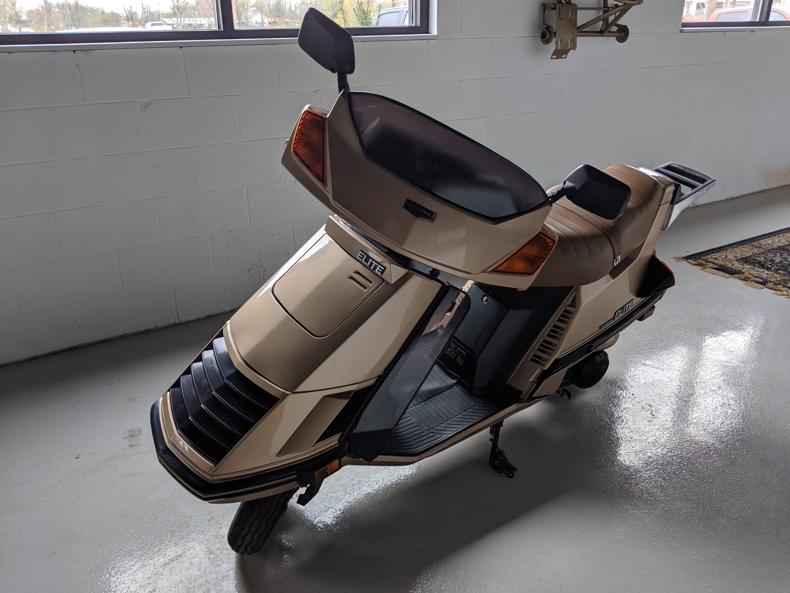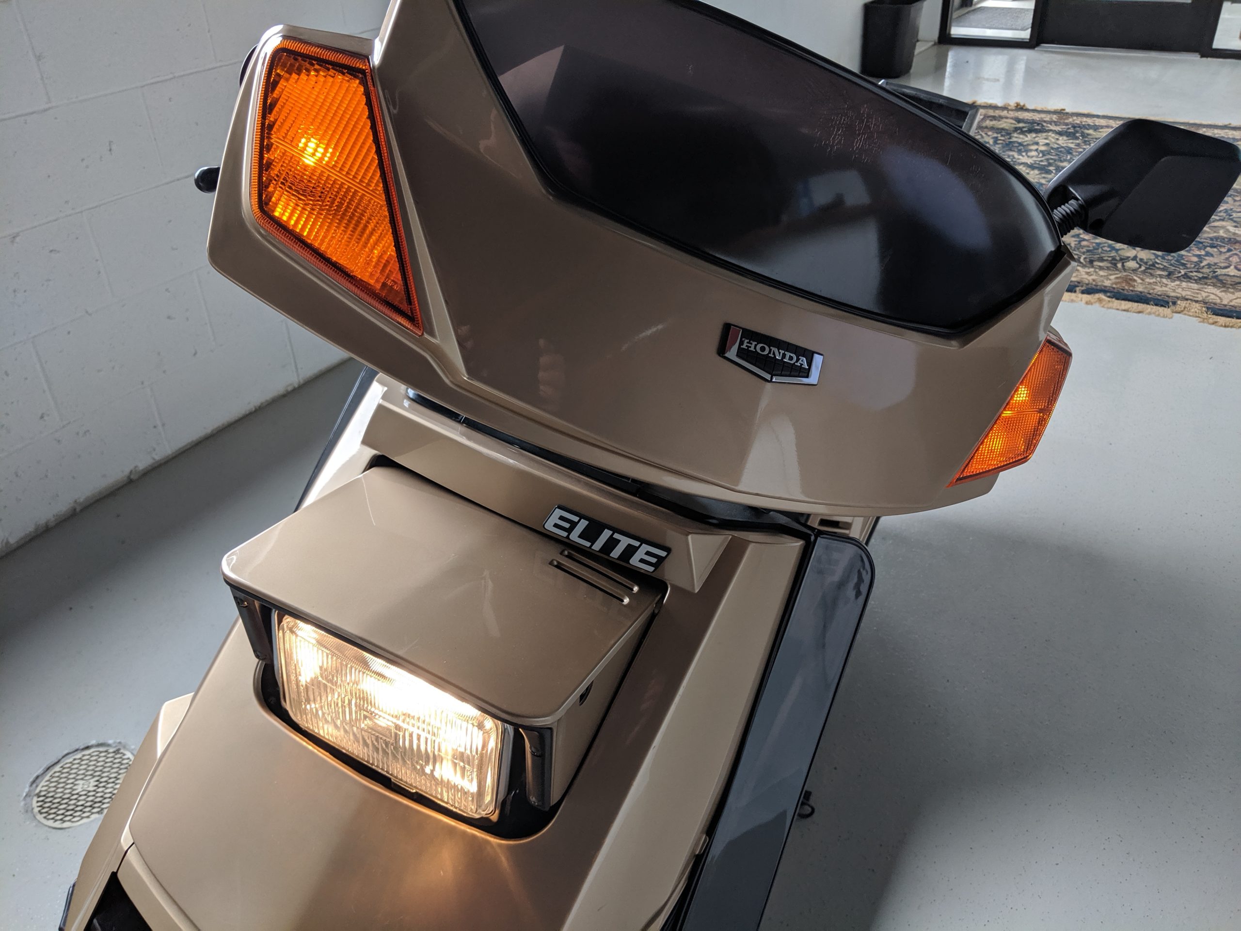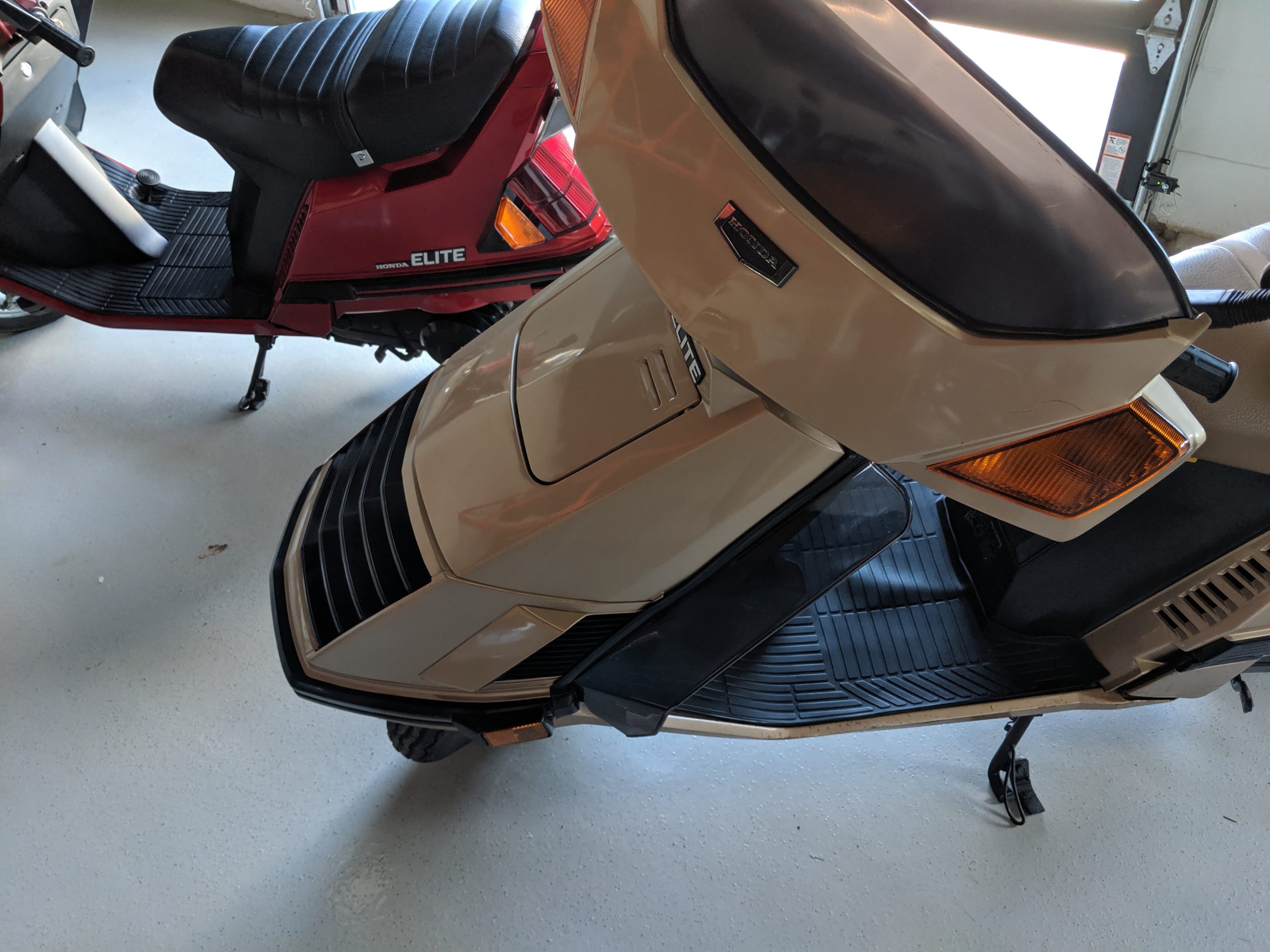 This first and only year 1984 Honda Elite 125 was purchased last year. The Honda Elites are the only scooter ever made with a pop up headlight. The 125 was only made in ’84. Honda continued the popup headlight in the 150 Deluxe for ’85 and ’86. The added power was a welcome addition before Honda discontinued their mid range scooter in favor on the 250cc and 80cc.