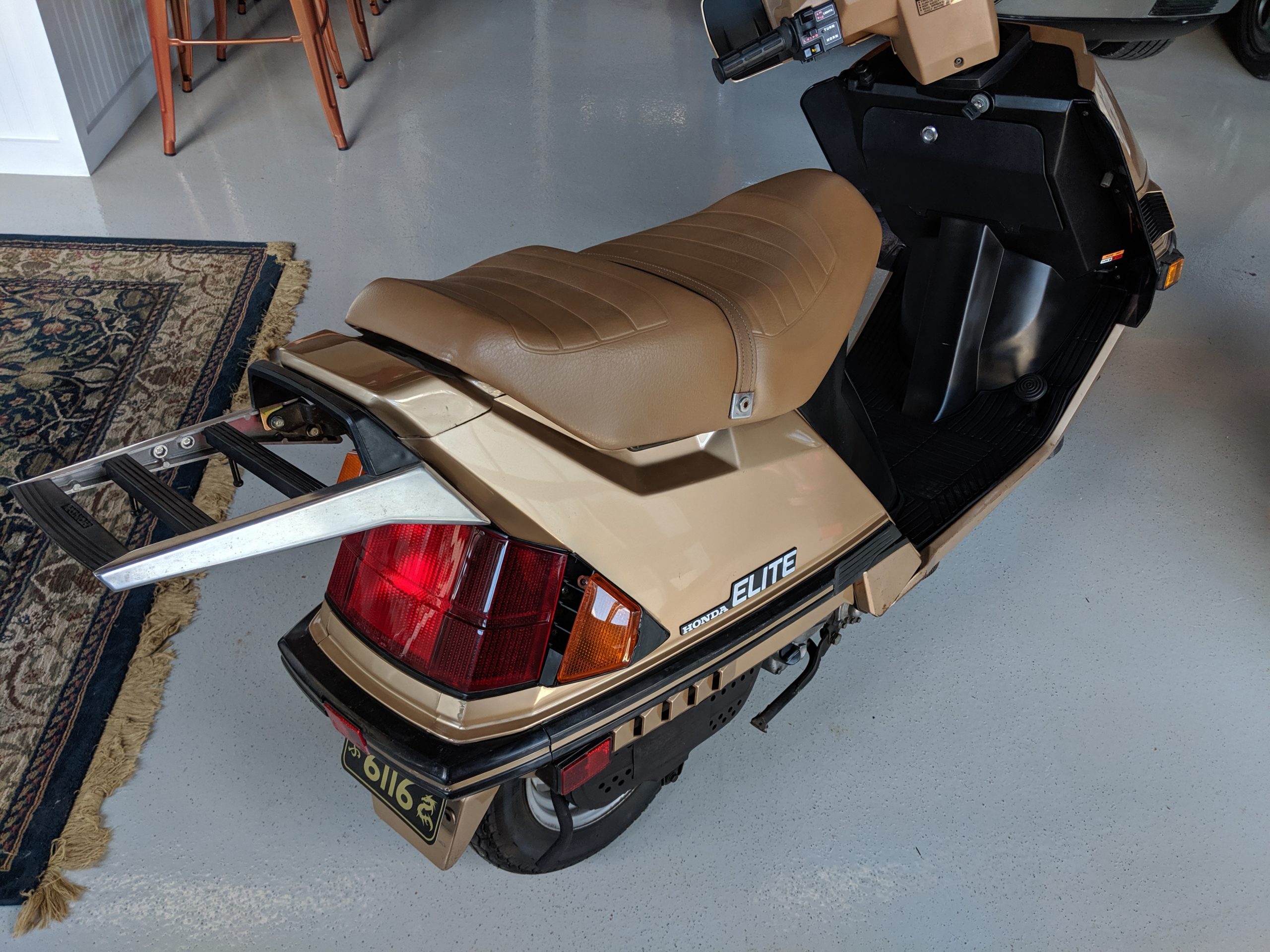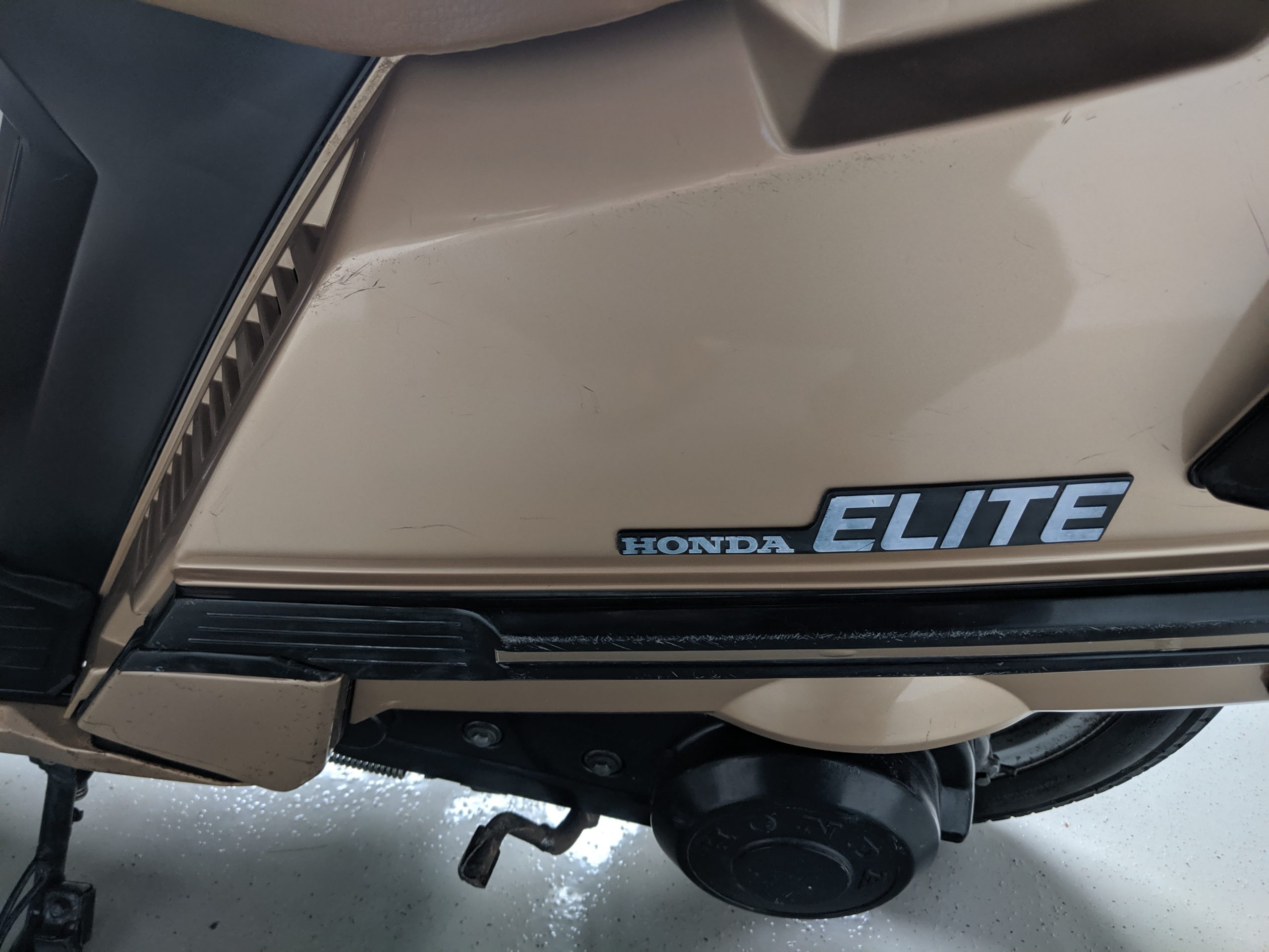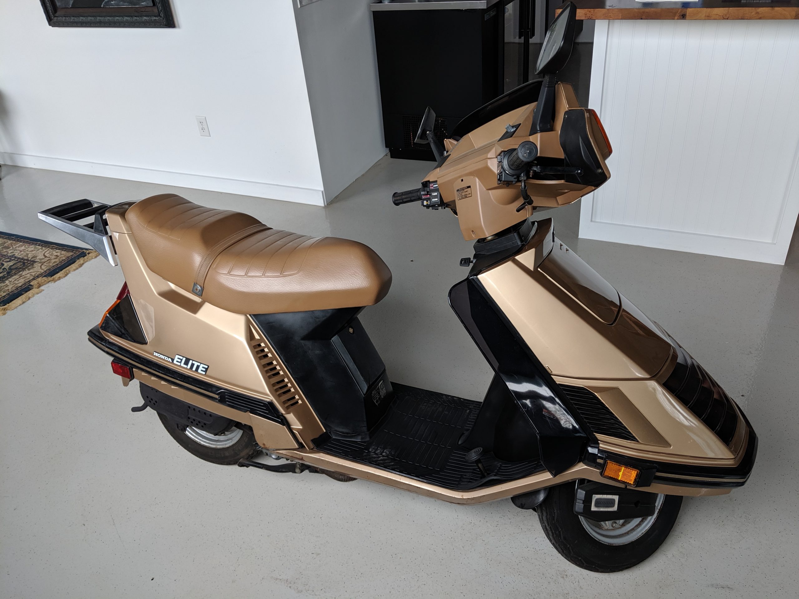This first and only year 1984 Honda Elite 125 was purchased last year. The Honda Elites are the only scooter ever made with a pop up headlight. The 125 was only made in ’84. Honda continued the popup headlight in the 150 Deluxe for ’85 and ’86. The added power was a welcome addition before Honda discontinued their mid range scooter in favor on the 250cc and 80cc.