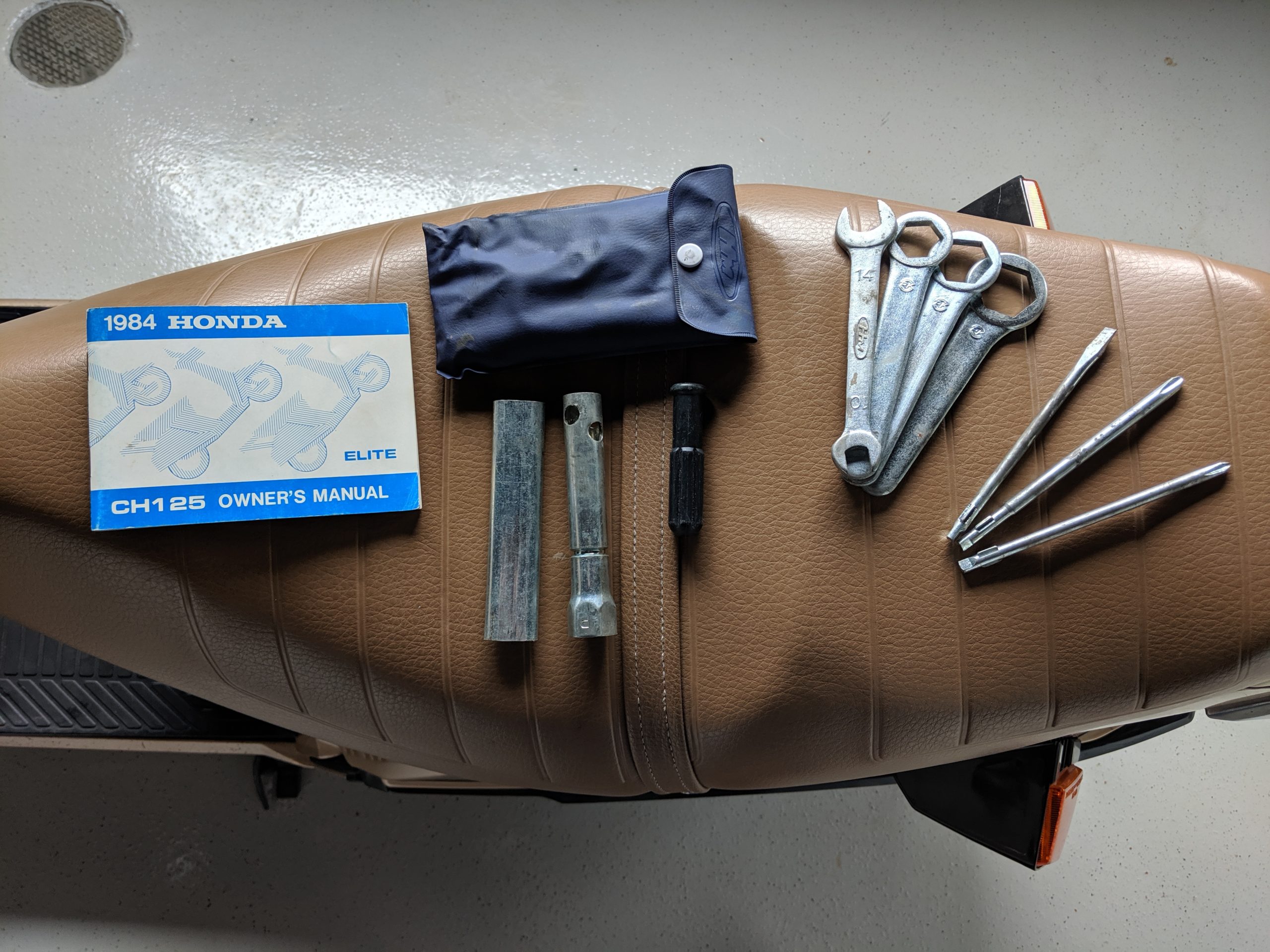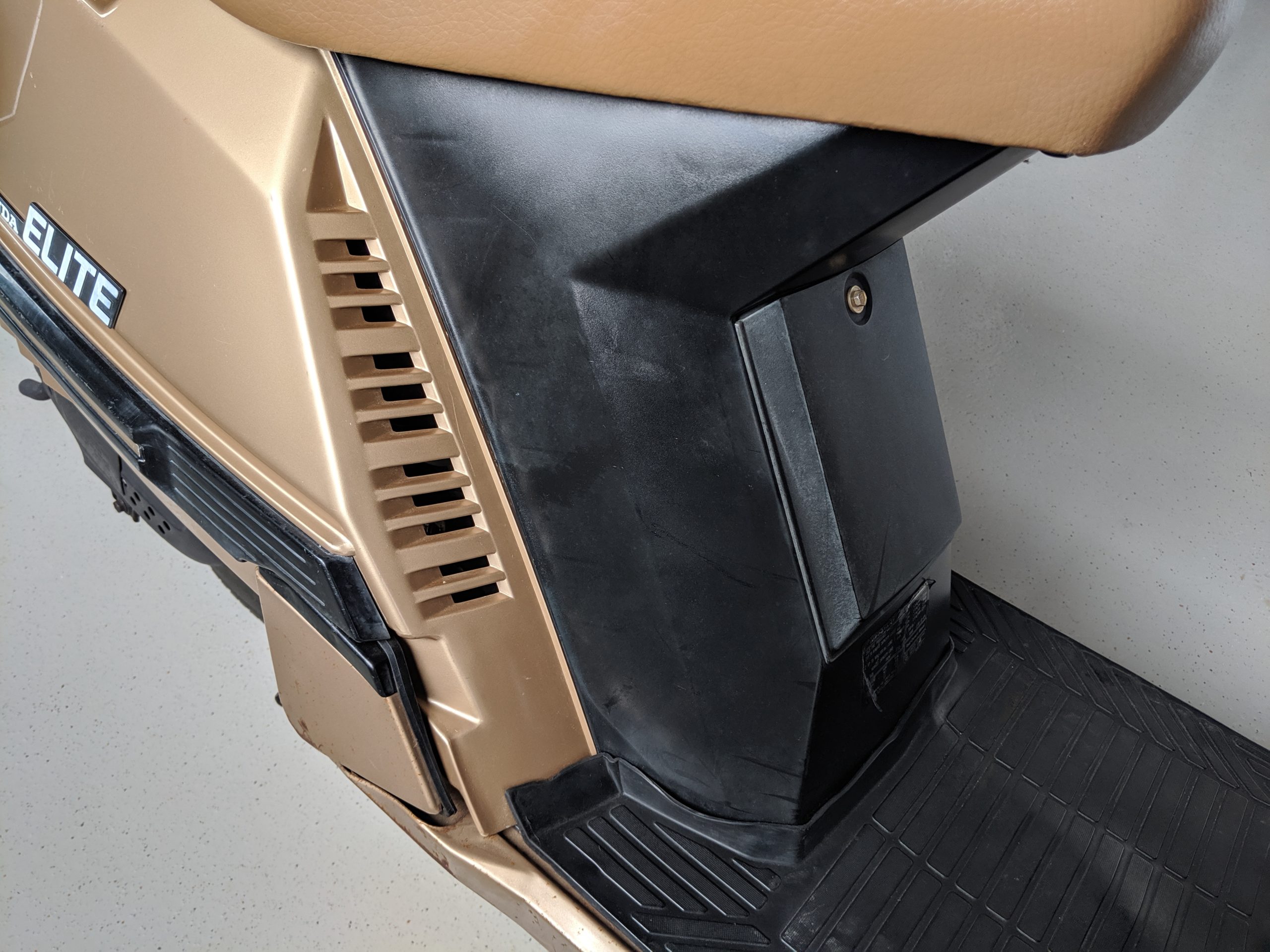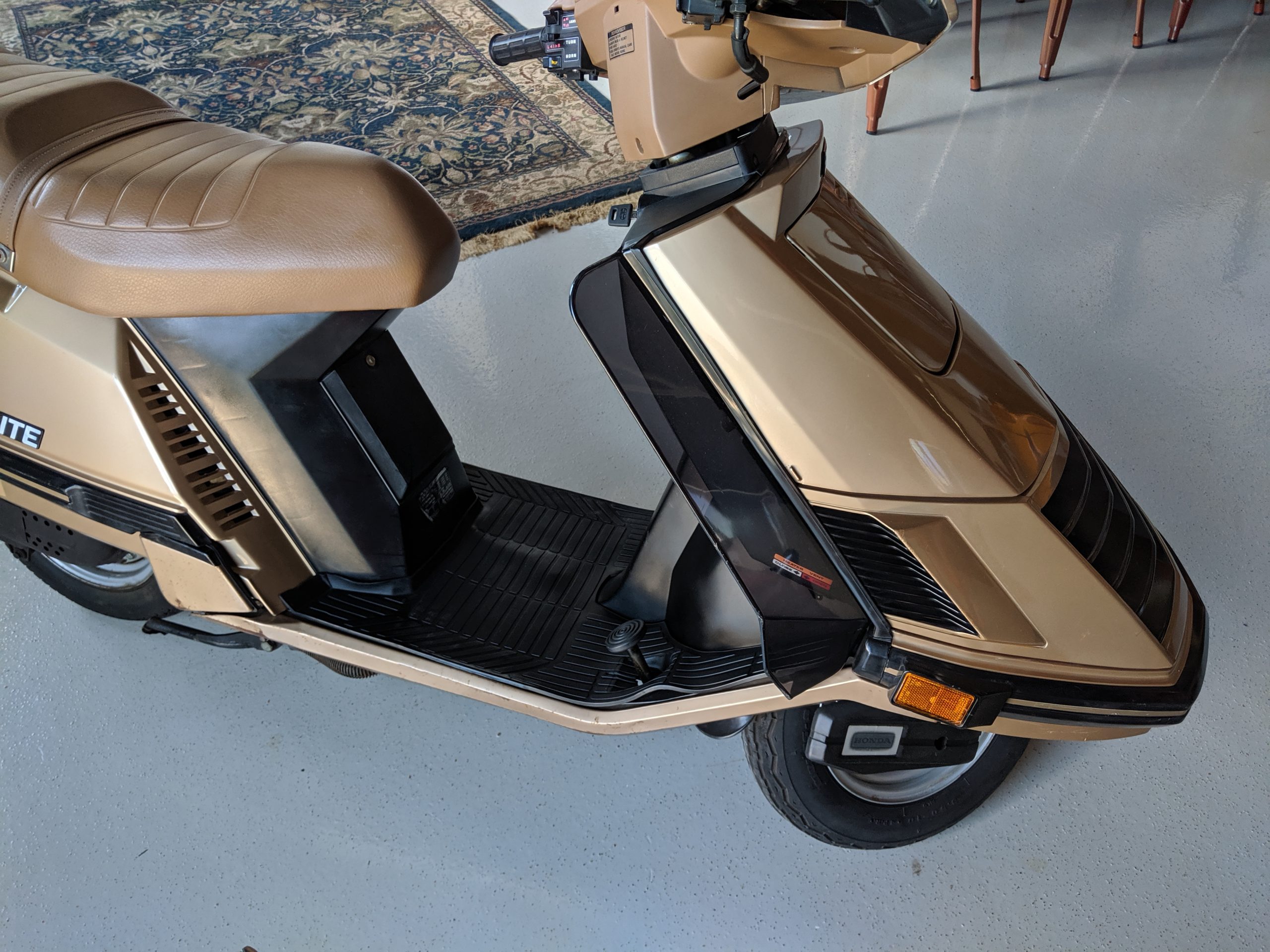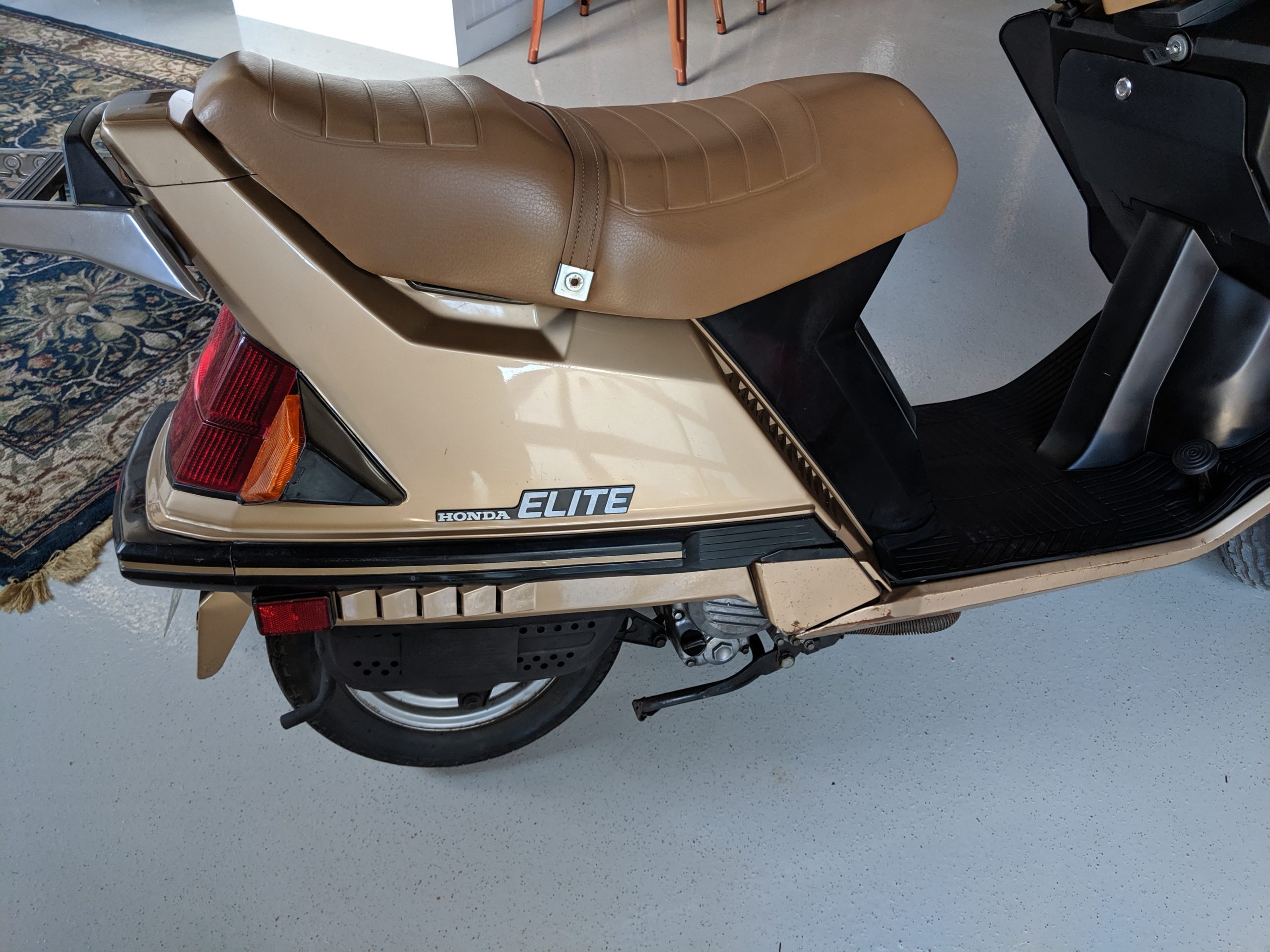 This first and only year 1984 Honda Elite 125 was purchased last year. The Honda Elites are the only scooter ever made with a pop up headlight. The 125 was only made in ’84. Honda continued the popup headlight in the 150 Deluxe for ’85 and ’86. The added power was a welcome addition before Honda discontinued their mid range scooter in favor on the 250cc and 80cc.