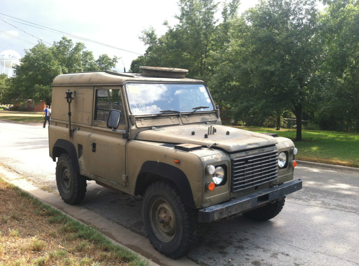 “I am proud to place up for sale a very rare and unique ex mod land rover defender 90. Only a handful of these were produced with a turret hatch. I believe this is the only one in the states. I could be wrong. But when was the last time you saw a landy 90 with a turret hatch bombing it down the highway? I have been driving it around where I live (bryan, texas) and it drives real nice. Smooth diesel 2.5 and the lt77 gearbox shifts very well. Everything works as it should. For a 25 year old defender this has to be one of the best frames that I have seen in a long time. No splitting of metal and everything looks solid. I also like the fact its fully original and nothing has been coated to hide any imperfections and problems. I think you know what I mean? When sellers spray 500 layers of undercoating to hide any problem areas. Slight scrape to the passenger side door skin. If push comes to shove I can replace the door. All doors do look great inside. No bad rusting. I was thinking of repainting the Rover but I think it looks great as it does. Just released from the middle east. This is pretty much as I received it from the MOD. A very nice, sold and super rare defender. It is RHD from factory. My daily driver here in TX is a RHD 90 and its never really bothered me, however you can convert over to a LHD. Each to their own.