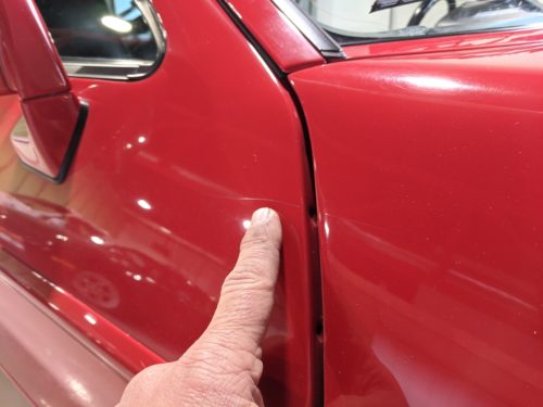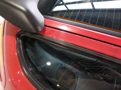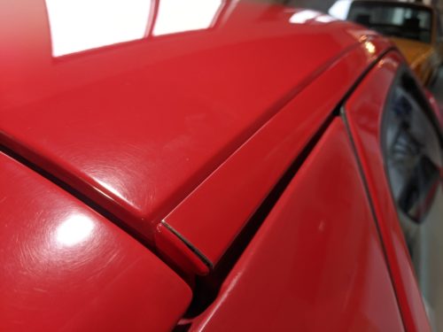 • No accident damage but documented dent repair on right rear fender from 1988, clear coat chipping as pictured near spoiler