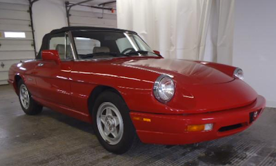 This year he was watching the neighbor’s house while they were up north. He had the key so we wandered over. In the garage lay a red 1990 Alfa Romeo Spider with only 28K miles on it. I thought it was special until I saw the automatic and almost spilled my drink inside it.
