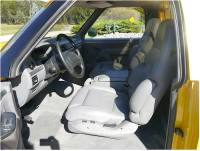 Sunfire pearl yellow paint really highlights the body shapes. Received “best truck paint” award and best in class award at the Milwaukee World of Wheels under our ownership. The one of a kind, well, six of a kind Proto type tires and wheels were “over the top” in 1994. Turn signals in the mirror face was ahead of it’s time. Head lights and tail lights are completely unique. The more that you study the truck, the more unique features you will see. The Power Stroke gets complements everywhere it goes.