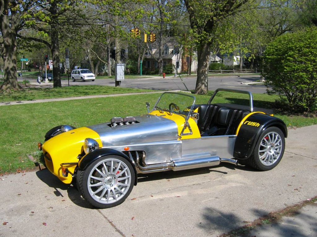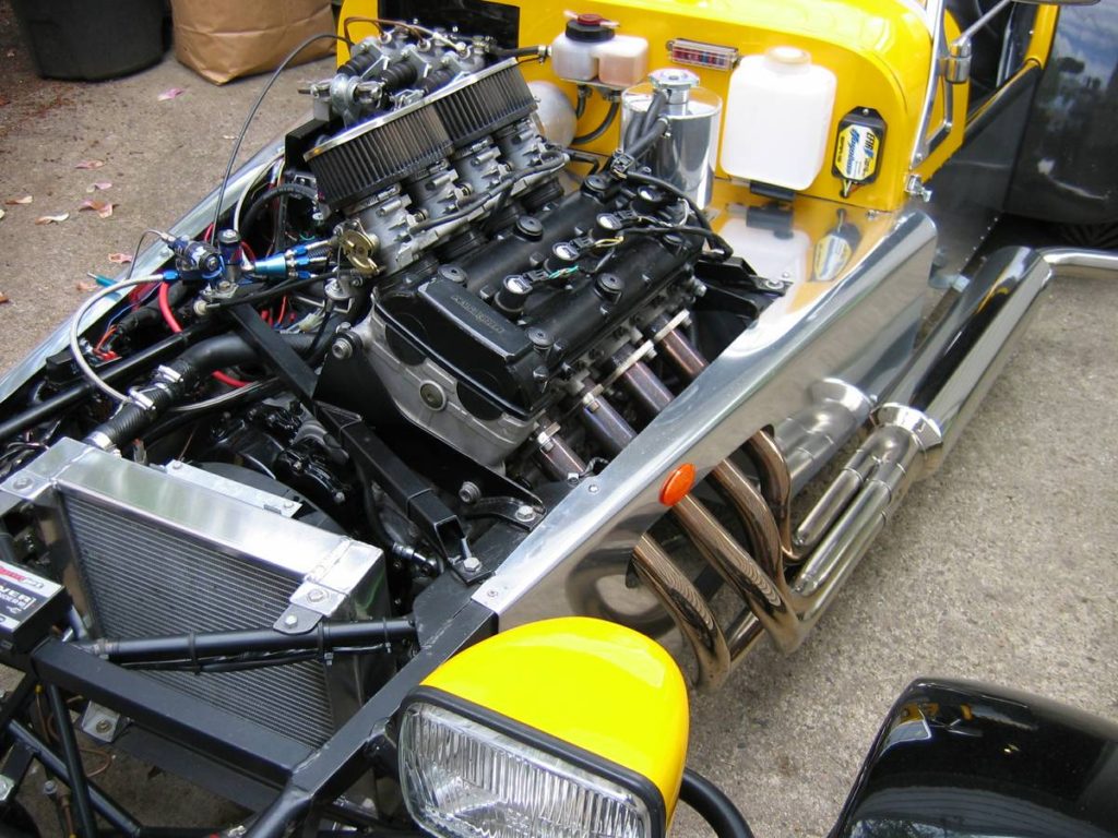 The rump looks like someone slapped a steamer trunk between some wheels and called it a day. But I can’t argue with the rest of the angles. The big mouth bass grille coupled with round chrome lights, or yellow square ones depending on which picture you look at, plus side pipes make for a purpose built look. If you told me the carburetors were going to stick through a cut out on the bonnet, I would say “stop talking crazy man, I’m not building a V8 gasser.” Yet somehow I find them more appealing breathing into a GSX-R1300 Hayabusa engine. My only beef and beit minor is the inviting worn-in seat belts and black leather seem to contrast against the bright yellow, modern wheels and sequential gear box. This thing must haul the mail.