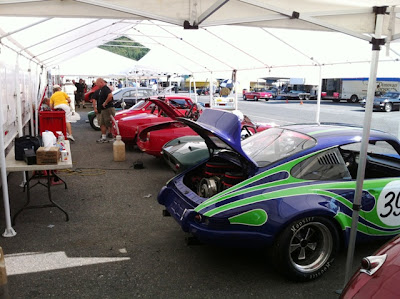 So all ready to go for the biggest Lime Rock event of the year.  One driver brought in a fabulous streetcar, a Ferrari 250SWB from GTO Engineering.  Gorgeous in all respects and just needs a clever plate on it. . .”unreal” or something.  Saving my sheckles now.  More exciting though, the Porsche 904 came to test its new Jim Burns 4 cam engine (KTR) and prep for a trip to the new F1 track in Texas, COTA, next month.