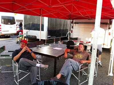 We arrived Wednesday afternoon and as we started to setup the paddock – tent city – we took in an unforcasted massive 1 hour rain storm.  At least most of the cars stayed dry under their EZ ups or in their trailers still.  Thursday, we completed the paddock and unloaded the 25 cars, put in position, checked fluids, tires, etc. and met with their drivers.  Some drivers were fresh off the Monterey Historics races of a few weeks ago and others had run Road Atlanta, Mont Tremblant, or Mid Ohio this summer.  One driver from Australia came to claim and test his newly purchased Lotus 18.  After some brake adjustment, he loved it, now he owns 5 18’s!