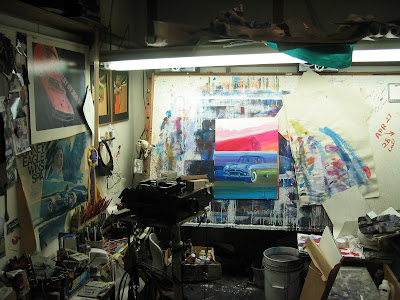 Here is a picture of an famous automotive artist’s studio. I met him one day outside of our office in Palos Verdes, CA. His daily driver is an original Cobra 289. He invited us to come to his studio one day and I snapped a few photos. More to come on the reveal.