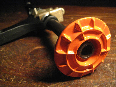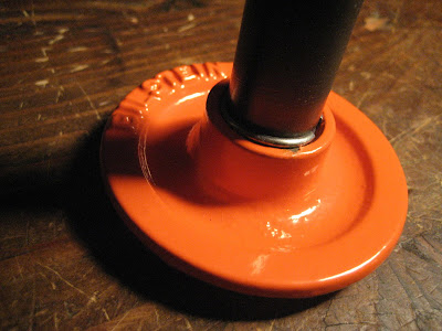 I restore and sell a lot of parts to feed the Porsche car habit. This jack was powder coated in satin black with orange base while the operating parts were cad plated gold. I spent considerable time wheeling and polishing out the rod, like 30 minutes, then put everything together with a light coat of oil so things work smooth like butta. You may have noticed the original color base jack was blue. I wanted a pop of color ala the 356 orange oil canisters so hoop there it is.