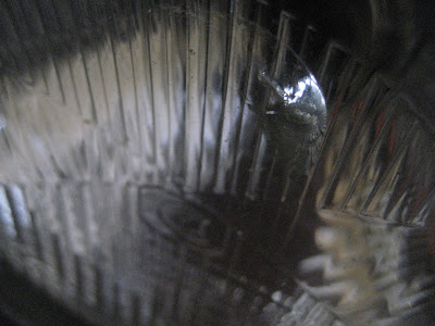 The ’71 911T came with Cibie headlights with concave lenses, not sure if you can tell that from the photos. As they seem quite unique, I always thought it would suck if they broke. Then I noticed a big rock chip in the passenger lens. Suspicion confirmed. They will break but to cover them with blue tape is going to make difficult driving at night.