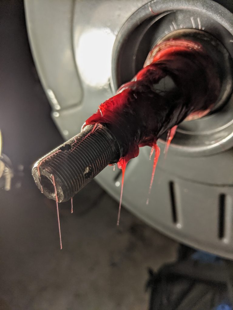 Got most of the suspension on over the weekend. Most components were powder coated, new or cad plated. Such as the cad plated bolts bolting new rotors to the hubs. Grease that sticks to everything and trails longer than an obnoxious teenager stretching gum completed the package.