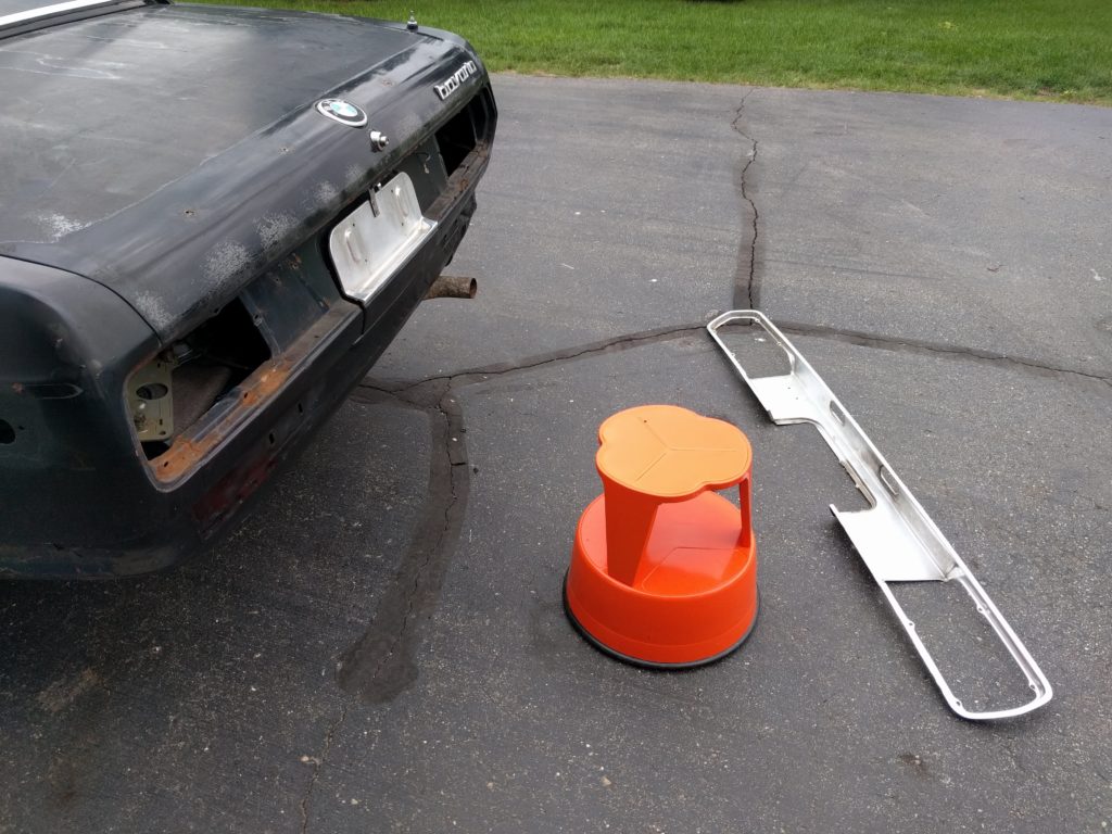 This driveway-art doesn’t drive down the road but in the spirit of “getting-ahead-of-myself,” I’ve been playing with the lights. When I first trailer-ed home this Bavaria and hooked up a battery, one light worked. Scratch that two, the trunk light worked. But before discovering that I gave a yank to the headlight switch and got only one tungsten filament hot, the driver side rear running light. That’s it. Not a single headlight, brake, hazard, side marker, nothing. Clean the grounds you say? Yeah, I’ve been trying that. But when you pull apart a light and most of it has corroded to point you’re surprised it’s still attached, pulling bulbs for clean grounds is just the beginning of the job.
