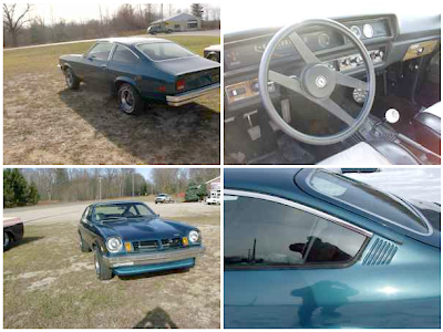 “1975 vega v8,4speed.10bolt posi rear end,car runs and drives great.motor is 283,040 over stock.big cam,new seats.new headliner,$4200.obo may take trades.”  Here it is.
